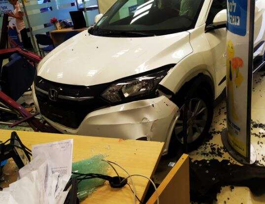 הרכב בתוך סניף הבנק // צילום: דוברות כבאות והצלה