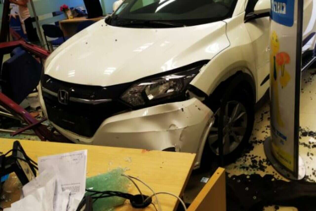 הרכב בתוך סניף הבנק // צילום: דוברות כבאות והצלה