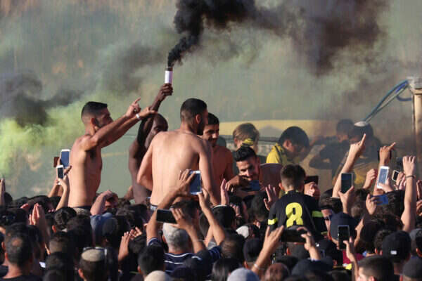 צילום: דני מרון // אוהדי בית"ר על הכתפיים, הערב בבית וגן
