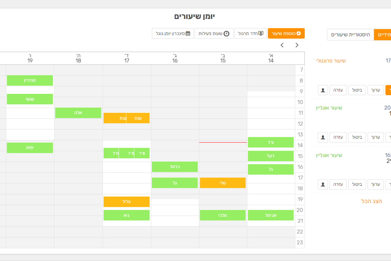 היומן החדש מאפשר מרכז את כל השיעורים הפרטיים של המורה, מאפשר ניהול תלמידים חדשים וקבועים, מעקב הכנסות, קביעת תזכורות, סנכרון יומנים ועוד