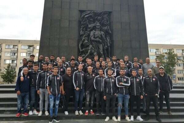 שחקני הפועל ת"א, היום בגטו וורשה // צילום: באדיבות הפועל ת"א