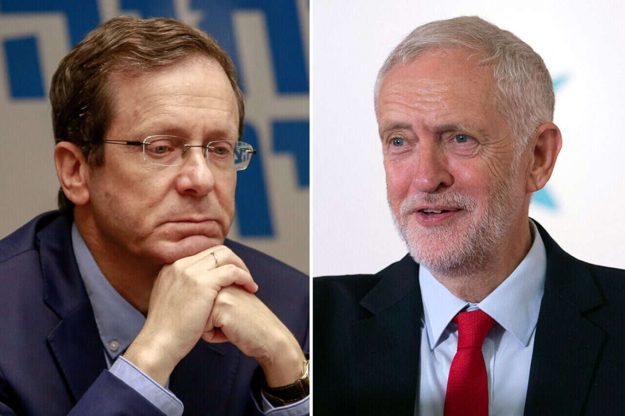 ג'רמי קורבין (מימין) ויצחק הרצוג // צילומים: אורן בן חקון, אי.פי