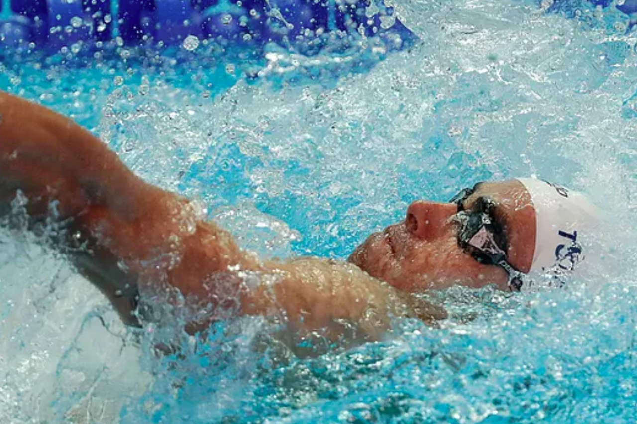 במשחה המקביל לגברים, זינק יעקב טומרקין, והפיינליסט האולימפי קבע 54.29 ש׳ וסיים במקום ה-21 (מ-63), מרחק 25 מאיות מהמקום ה-16 ומהעפלה לחצי הגמר. כעת, יתכונן טומרקין ל-200 מטר מעורב אישי (רביעי) ול-200 מטר גב (חמישי).