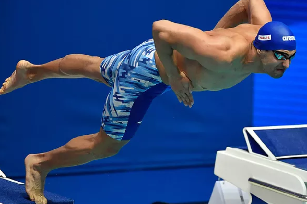 גולדפדן, המתאמן באוניברסיטת דרום קרוליינה, קבע 27.67 שניות במשחה החזק שלו וסיים במקום ה-25 הכללי (מתוך 79). המקום ה-16, ממנו מעפילים לחצי הגמר, נסגר על 27.33 ש׳. ראשון לחצי הגמר עלה כצפוי שיאן העולם אדם פיטי, עם 26.28 שניות, לא רחוק משיאו העולמי.