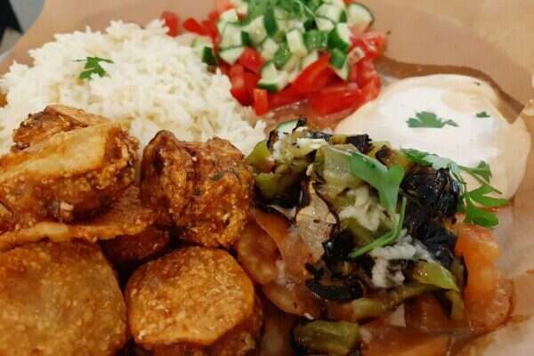 טבעונים? לא שכחו אתכם: פרט לשיפודי הקבב והעוף, ישנה גם מנה טבעונית של מאין מאפה בטטה וכרובית עטופים בכרוב ובדף אורז. את כל המנות במסעדה ניתן לקבל גם בקערה בתוספת ירקות, בורגול ורטבים, אבל למה לכם בעצם?