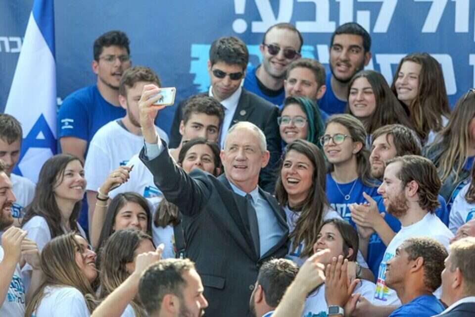 גנץ עם פעילי כחול לבן // צילום: גדעון מרקוביץ'