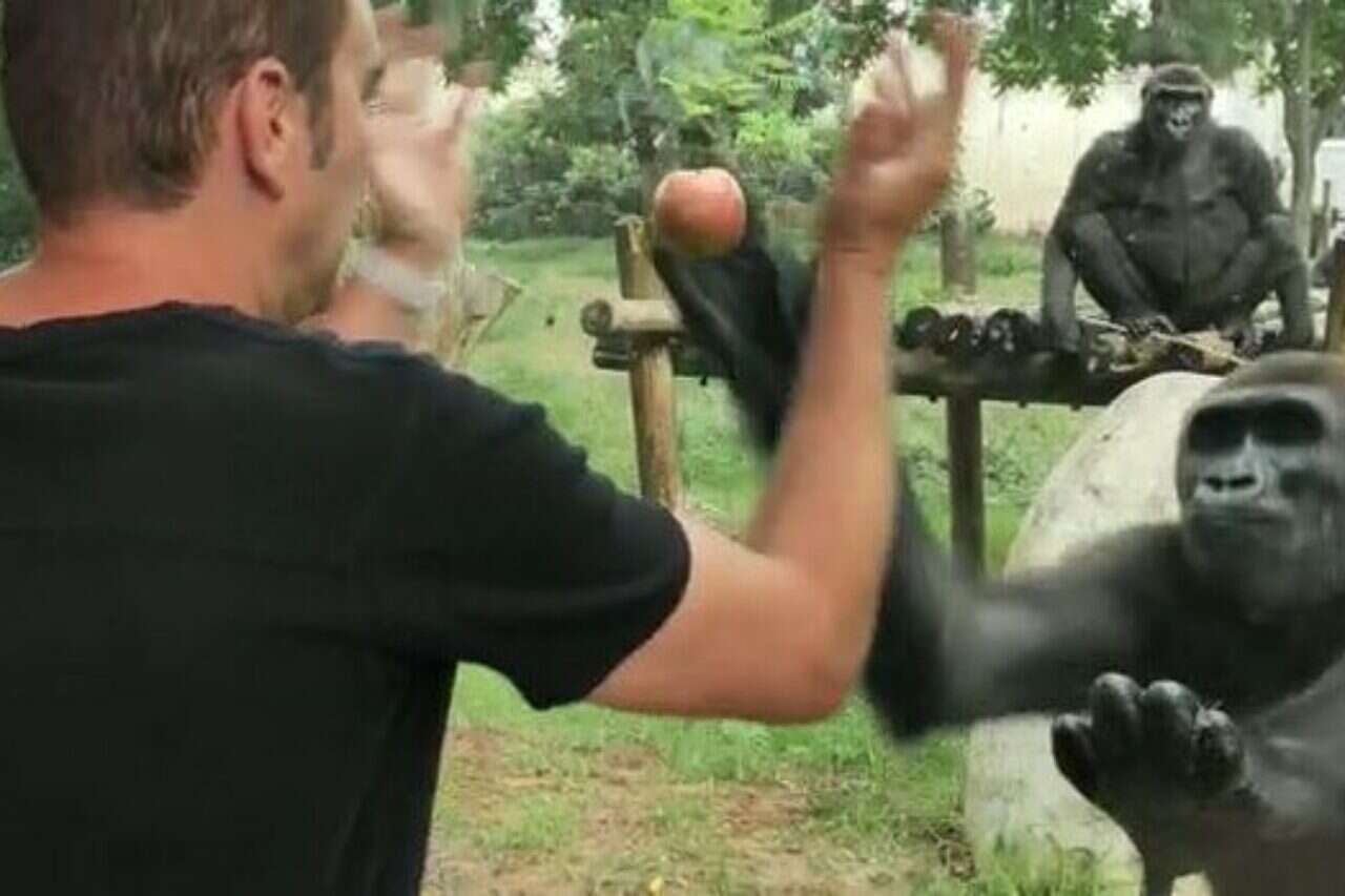 אמן החושים והמנטליסט שימי איטיאס ביקר היום (שלישי) בספארי ברמת גן וביצע תעלול חביב במיוחד. מול מתחם הגורליות, אמן החושים הצמיד תפוח למחיצה השקופה והעביר אותו דרכה היישר לידיה של גורילה חביבה, שעטה על השלל.