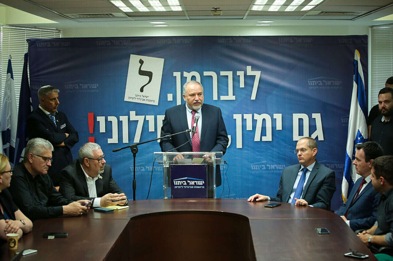 ליברמן ובכירי "ישראל ביתנו" // צילום: אורן בן חקון
