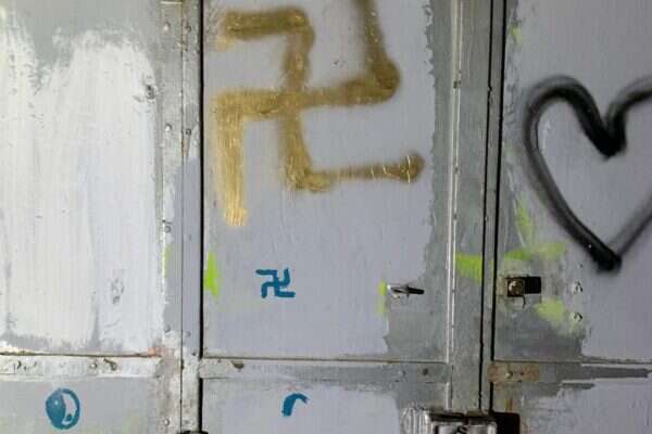 הקטינים, תושבי מזרח ירושלים ובני מיעוטים, כשהם מרססים באמצעות ספרי צבע צלבי קרס על קיר באחד מהרחובות בעיר העתיקה שבירושלים. כוחות המשטרה שהיו בקרבת מקום, איתרו את הקטינים כבני 16 ועצרו אותם לחקירה בחשד להשחתת פני מקרקעין ובחשד לעבירות ממניע גזעני.
