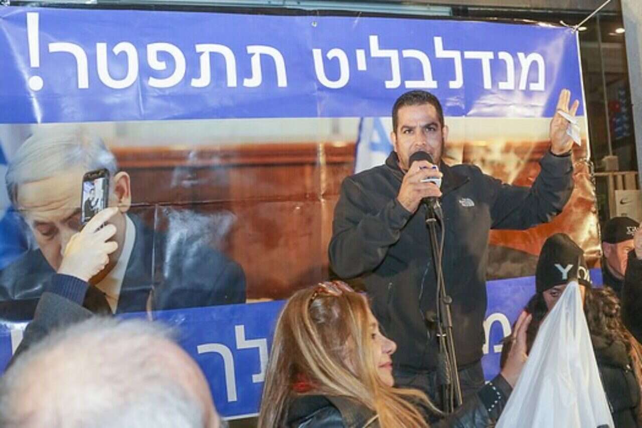 הפגנה ליד ביתו של היועמ"ש אביחי מנדנבליט בפתח תקווה // צילום: גדעון מרקוביץ'