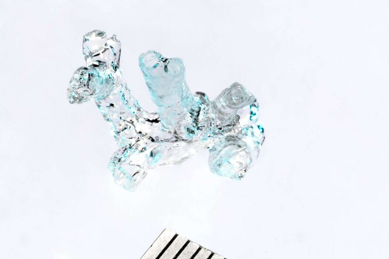 דגם עורק ריאה של עכבר שהודפס בתהליך החדשני // צילום: Alain Herzog / EPFL
