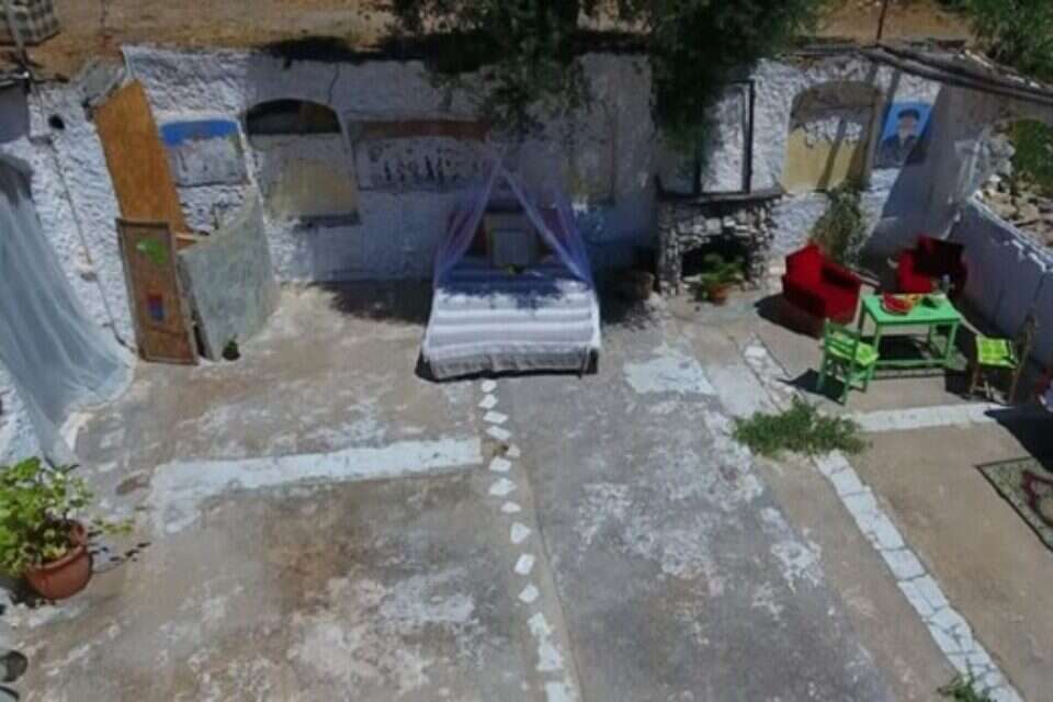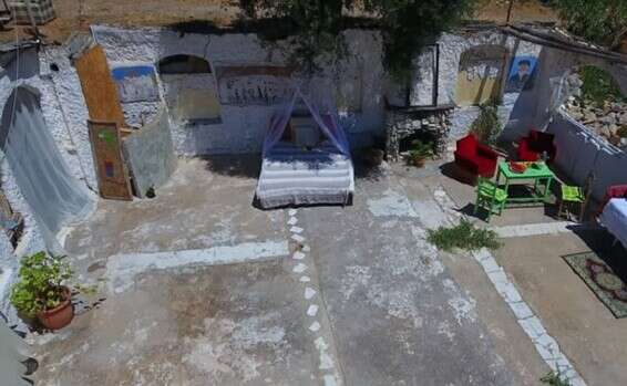למעשה, ה"חדר" שוכן בחצר, ומוקף בארבעה קירות של בתים ישנים. מקום האירוח המרווח והאוורירי נמצא במרחק של 100 מטרים בלבד מחוף הים, אולם הוא מבודד למדי ונמצא כ-13 קילומטרים מהרקליון, עיר הבירה של כרתים. ההשכרה כוללת שתי מיטות זוגיות, שירותים, מקלחת, שתי קמינים וסלון - אך לא כוללת תקרה. המחיר כצפוי, זול במיוחד: רק 22 יורו ללילה לכל המתחם.