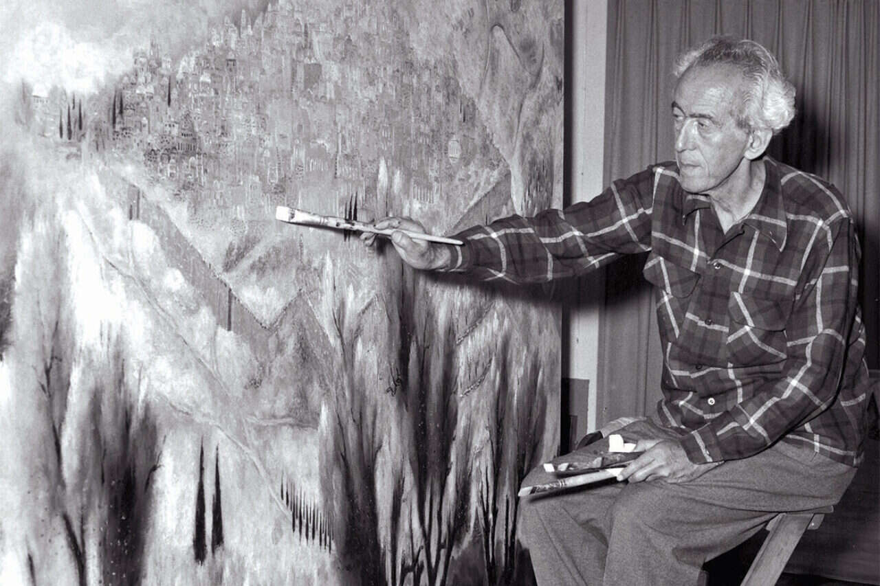 רובין (שלישי מימין) נוטע דקלים בפרדס "גן אסתר" // צילום: באדיבות מוזיאון ראובן רובין