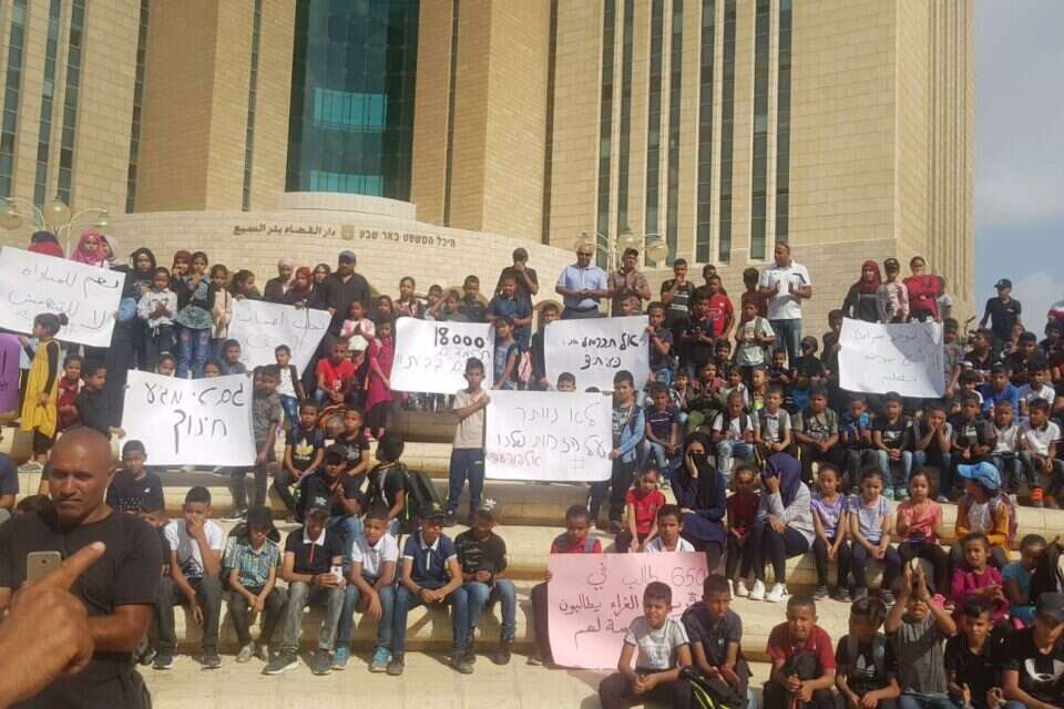יותר מאלף מפגינים הגיעו הבוקר (חמישי) לרחבת קריית הממשלה בבאר שבע, במחאה על כך ששנת הלימודים בכפרים הבלתי מוכרים בנגב לא נפתחה. ראש המועצה האזורית אל קסום, סלאמה אל-אטרש, הגיע לתמוך במאבק התושבים ואמר: "לא ניתן למשרד החינוך להמשיך להתעלם מהתלמידים שלנו".
