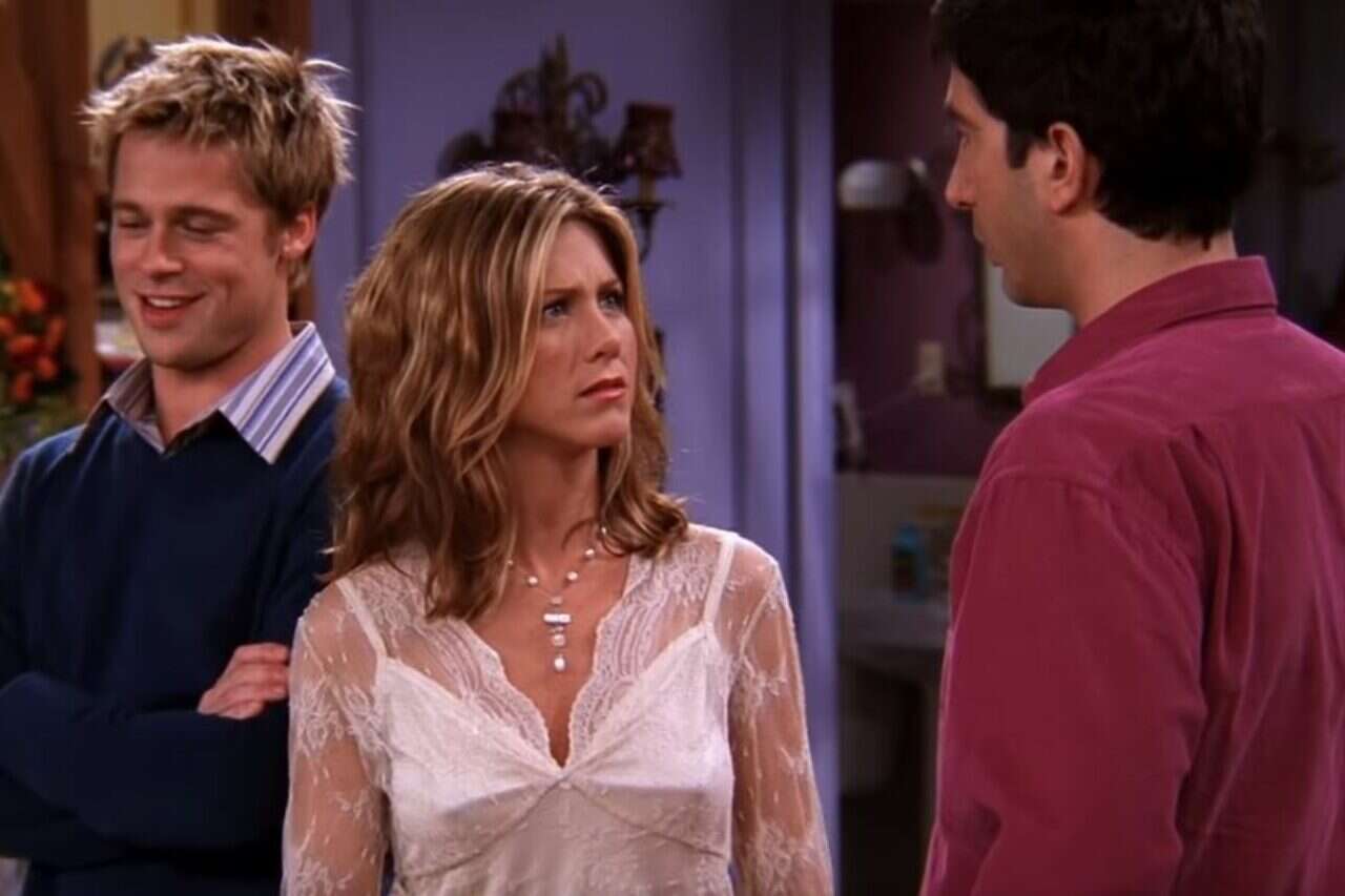 מעל כולם בלט הרומן ההוליוודי הנוצץ בין ג'ניפר אניסטון לאחד, בראד פיט. מגה סטאר בשנות הפריצה הגדולות שלו, שמאחוריו סרטים שכבר הפכו קאלט פילמוגרפי בדמות "פייט קלאב" ו-"סנאץ'". אחד מהם היה קלאסיקת הריגול שנות התשעימית "משחקי ריגול", ובדיוק אותו הוא הגיע לקדם, כשהתארח בפרק 9 בעונתה השמינית של הסדרה הפופולרית. כן, במהותו העסקית מדובר במפגן של אופורטוניזם טהור, קידום של סרט הוליוודי דרך התארחות בקומדיית המצבים המצליחה בתקופתה. אלא שפיט עשה זאת כבעלה של אחת השחקניות הבולטות בו, וסיפר כי ממילא הוא מחבב את הסדרה, אז למה לא בעצם.