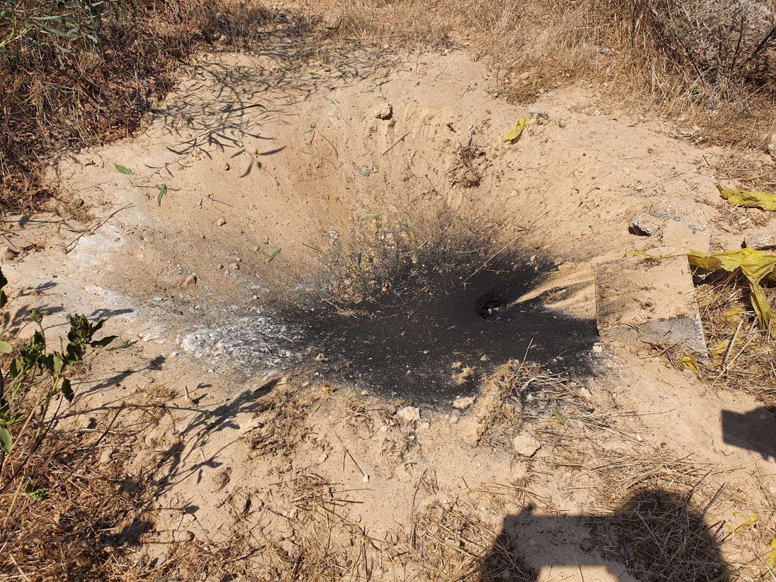 הבור שנפער בעקבות נפילת הרקטה מעזה // צילום: דוברות מועצה אזורית חוף אשקלון