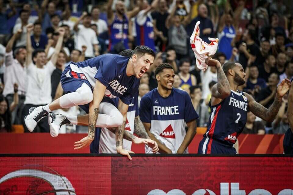 צילום: באדיבות אתר פיב"א // שחקני צרפת בטירוף מול ארה"ב