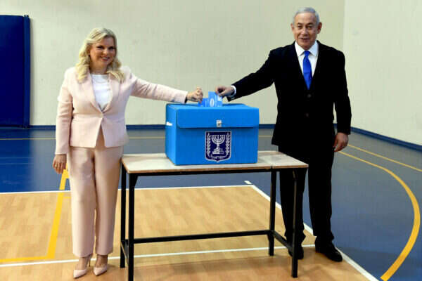 בני גנץ ורעייתו רויטל בקלפי בראש העין // צילום: יוסי זליגר