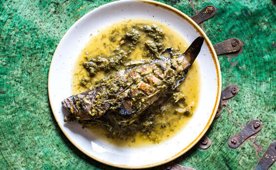 דגי ים בחורשט סבזי. מחווה למתכוני הדגים המבושלים בעשבים באירופה ובמטבח הערבי // צילום: איתיאל ציון // דגי ים בחורשט סבזי. מחווה למתכוני הדגים המבושלים בעשבים באירופה ובמטבח הערבי