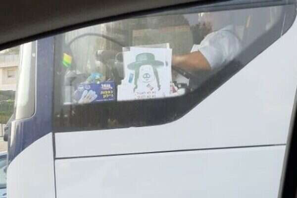 איור של חזיר בדמות חרדי, עם הכיתוב "נא לא לאכול, נא לא ללכלך", תועד היום (חמישי) באוטובוס של חברת קווים בעיר מודיעין. את האיור תיעדה עוברת אורח, שראתה את התמונה בקו 881 של החברה. האישה, שהזדעזעה מהתמונה, פנתה לארגון חוננו בבקשה לסייע לה בהגשת תלונה נגד הנהג והחברה.