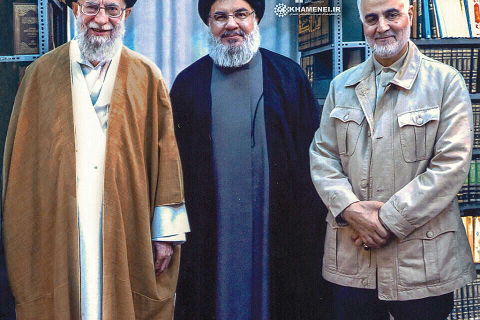 תמונה נדירה שבה נראה חסן נסראללה, מזכ"ל ארגון הטרור חיזבאללה, לצד מנהיגה הרוחני העליון של איראן, עלי חמינאי, ומפקד כוח קודס של משמרות המהפכה, קאסם סולימאני, פורסמה הערב (רביעי) באתרו של חמינאי.
