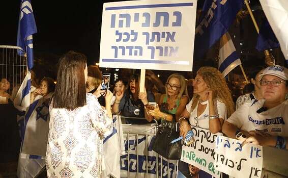 המפגינים מול ביתו של מנדלבליט // צילום: ירון דורון | המפגינים מול ביתו של מנדלבליט // צילום: ירון דורון
