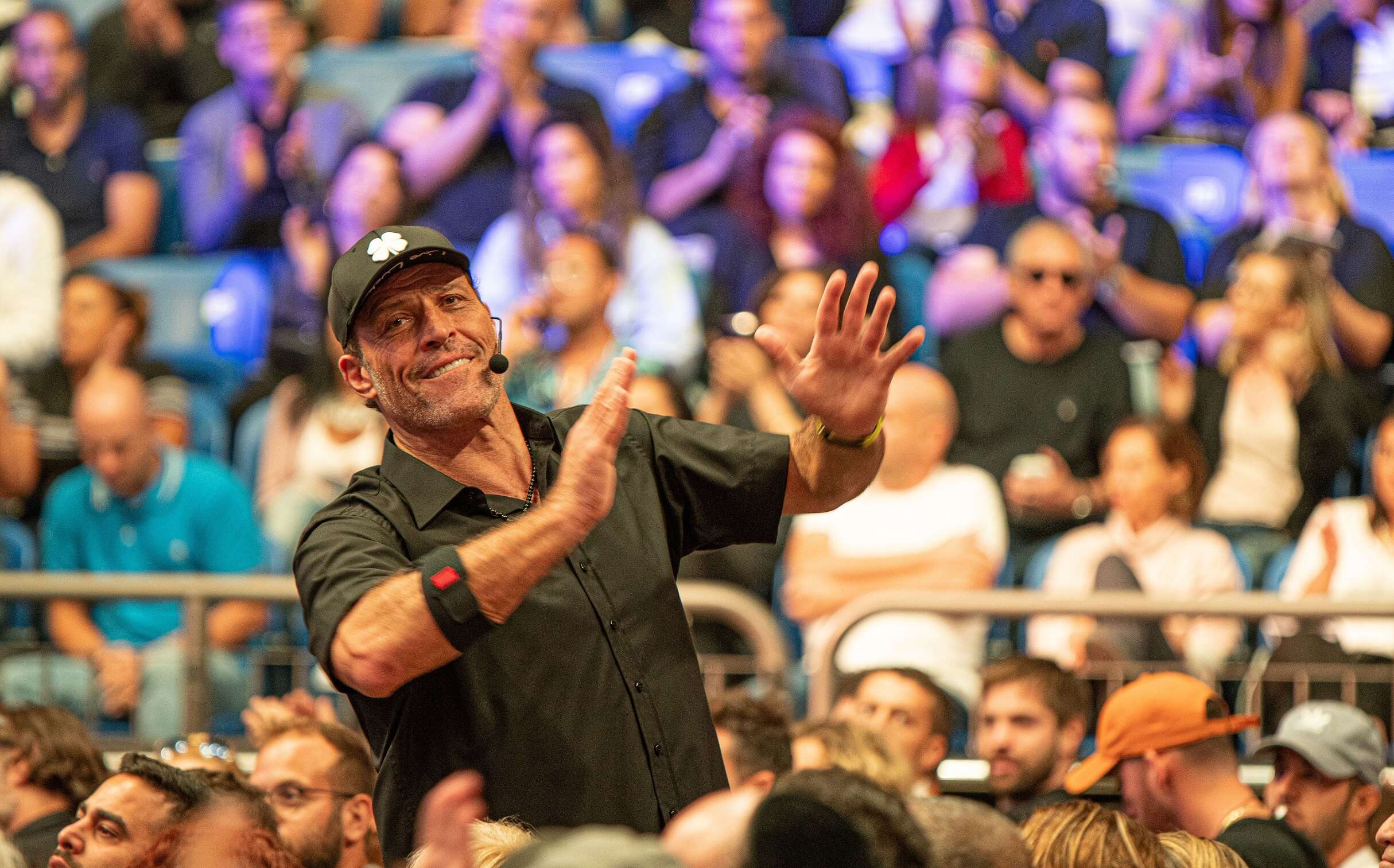 מדובר כמובן בקואצ'ר המפורסם בעולם טוני רובינס, האיש ששותף להצלחות של ביל קלינטון, סרינה ויליאמס, מייקל ג'ורדן ועוד, שהגיע ביום שישי האחרון להיכל מנורה בתל אביב ונתן שואו שנמשך כמעט חמש שעות מול אלפים ששילמו אלפי שקלים לכרטיס כדי לקבל טעימה מהטירוף הזה.