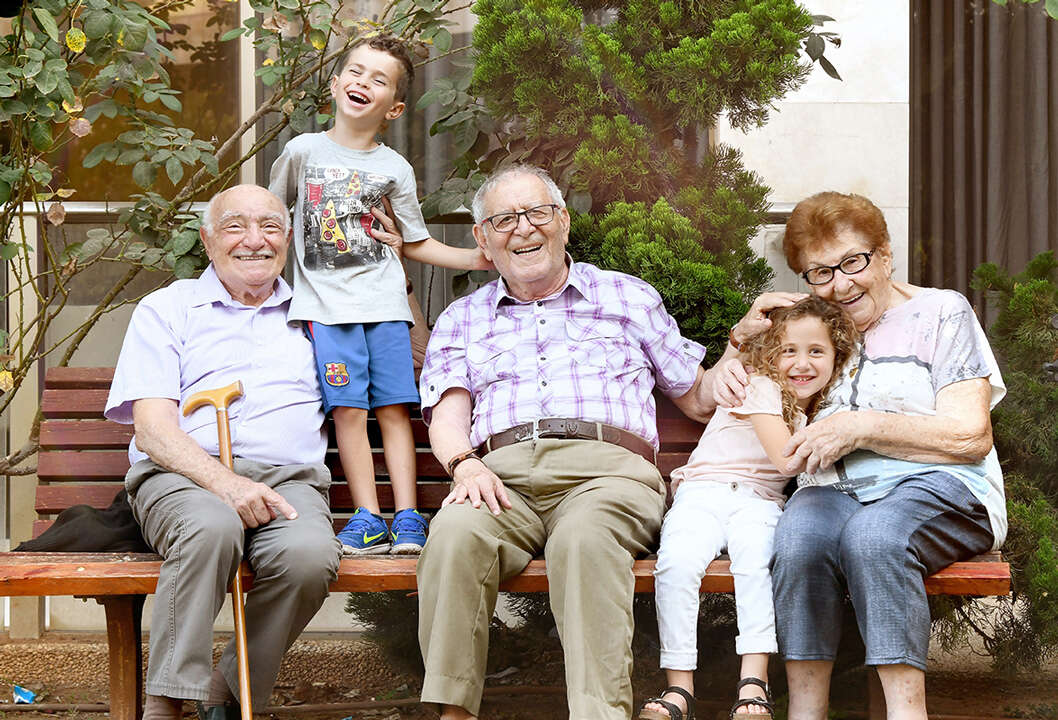 פתאום מפירים את השקט קולות צהלה של ילדים. מִיָּה וארי ונדרסמן, בני דודים בני 5, פורצים אל רחבת הדשא בריצה וממהרים לכיוונם של אידה (93), נתן (93) ופֶרץ (88), שממתינים להם בהתרגשות על ספסל אחר.