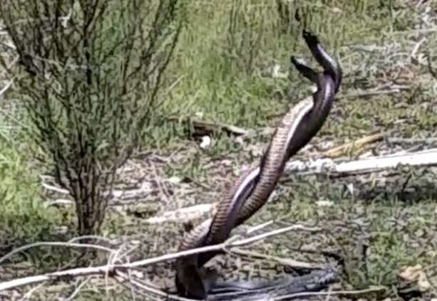 שני הנחשים, שמתלפפים בעוצמה, לוחשים בזעם ומגיעים למצב בו כמעט כל גופם מצוי באוויר, מנסים להכריע את יריבם ולהורגו. הצלם עצמו, שצילם את הקרב החריף ביער בדרום אוסטרליה, כלל לא ידע מה הוא רואה וכתב: "או שהנחשים מזדווגים או שהם רבים על נקבה". גם חלק מהצופים לא ידעו לקרוא את הסיטואציה היטב, ובתגובות לסרטון בפייסבוק הם ניסו לנחש מה הם רואים לנגד עיניהם. אחד המגיבים ציין כי "זו לא הזדווגות אלא ממש קרב על נקבות", אולם גולש אחר התעקש: "לא לא, זה לא קרב אלא הזדווגות של השניים".