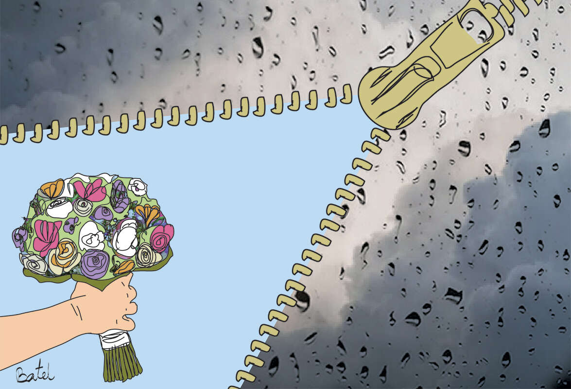 התחתנתי ביום שבו החזאים צפו סערה. החתונה כולה נערכה בחוץ, בירושלים. במשך השבוע שוחחתי בנימה תובענית עם פרופסורים לחיזוי מזג אוויר, עם השירות המטאורולוגי ועם בורא עולם, שהלך והשתכנע: הסיכוי לסערה פחת, אבל עדיין היו "עשרה אחוזים של סיכוי לגשם". מלחיץ לארח 400 איש בחתונת חצר עם "עשרה אחוזים סיכוי לגשם". ובכן, אם הייתי צריכה הוכחה מידי שמיים לנישואים הללו - החתונה כולה התנהלה במזג אוויר מושלם, עם שמש נעוצה מעלינו ואורחים שרקדו תחת שמיים כחולים, מזיעים בתוך הסוודר שהביאו מהבית אבל מאוד מחייכים.