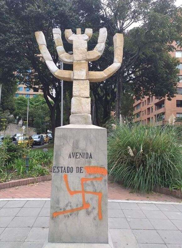 פסל של מנורה הושחת אמש (שישי) בבוגוטה, בירת קולומביה. על הפסל שנמצא בקרבת בית כנסת מקומי צויר צלב קרס. העבריינים אף הגדילו לעשות ומחקו את המילה "ישראל" מהמנורה, ממוקמת ברחוב 94 בצפון בוגוטה. אחת ההערכות הן כי מדובר במי שמשתייך לכתות הניאו נאציות.