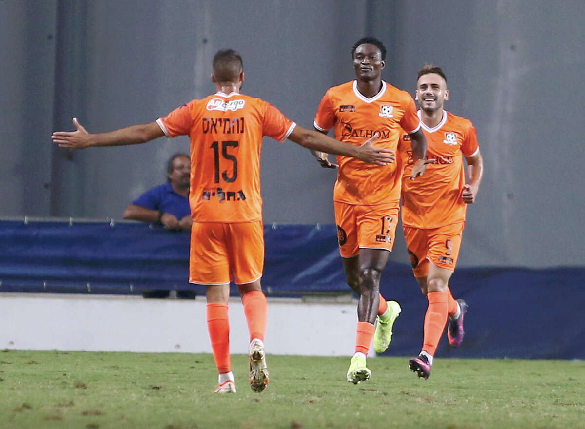 חנן ממן על הדשא. משחק חלש של האורחים במושבה // צילום: אלן שיבר
