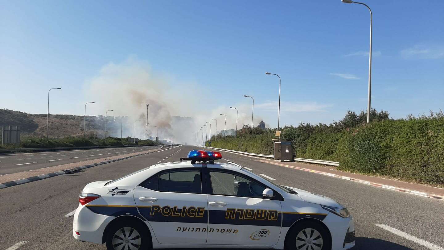 שריפה בסמוך לכביש 6 // צילום: דוברות המשטרה