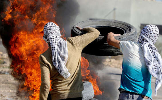 פלשתינים מבעירים צמיגים באזור אל ערוב //