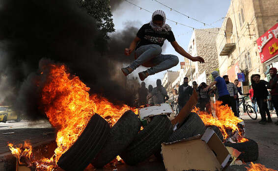 מפגינים פלשתינים מתעמתים עם חיילי צה"ל באזור חברון // צילום: אי.פי.איי