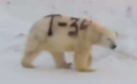 פעילי בעלי חיים ואיכות הסביבה זועמים בימים האחרונים מאז פורסמו צילומי וידאו מרוסיה בהם נראה דוב קוטב לבן, שתועד מסתובב בשטח בקור של -40 מעלות כשעל פרוותו הלבנה רוסס הכיתוב "T-34".