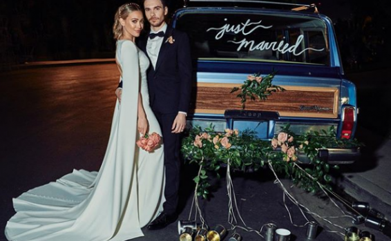החתן לבש טוקסידו קלאסי שחור עם חולצה לבנה של בית האופנה הצרפתי סלין, ונראה שיק במיוחד. לזוג הטרי יש בת משותפת שנולדה בחודש אוקטובר האחרון ששמה בנקס ויולט בייר. בנקס הקטנה לבשה גם היא שמלה בעיצוב אישי של פקהאם, שמלה לבנה מתוקה עם שרוולים תפוחים, חצאית טול, חגורת מותן מסרט משי בצבע ורוד בייבי ופפיון משי לבן ענק מאחור, שמלה מקסימה ועדינה.