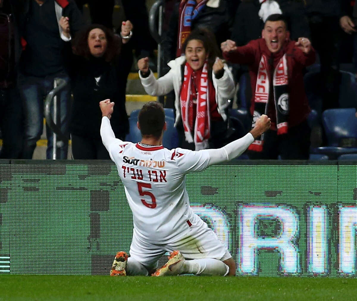 הפועל ת"א חוגגת את השער של אבו עביד // צילום: אלן שיבר