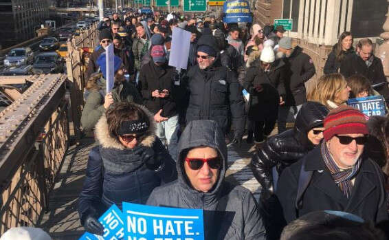 הפדרציה היהודית של ניו יורק קיימה היום (ראשון) בעיר צעדת מחאה ענקית על גשר ברוקלין. אלפי יהודים ולא יהודים מחו נגד השנאה והאנטישמיות, כפי שבאו לידי ביטוי בתקריות הקשות האחרונות במונסי, בברוקלין ובניו ג'רזי. מסלול המחאה, שצועדת תחת הכותרת: "אין שנאה, אין פחד", ייפתח בכיכר שמול בית המשפט העליון בלואר מנהטן, ויחצה את גשר ברוקלין עד לכיכר קולומבוס, שם תיערך עצרת רבת־משתתפים.