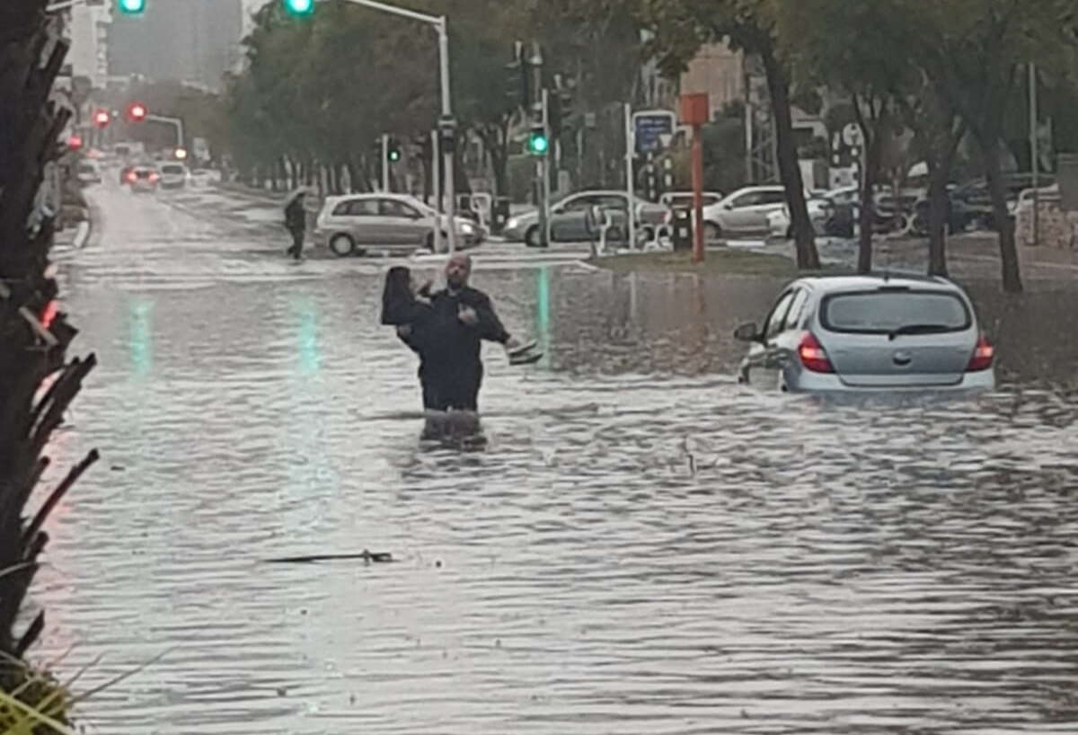 שוטרי סיור בעיר אשדוד חילצו הבוקר נהגת שנקלעה אל תוך שלולית ברחוב שד' ירושלים בעיר • נחל רבה עלה על גדותיו בראש העין, הציף בתים וגרם לכלי רכב להיתקע בשלוליות גדולות • כמה אנשים נלכדו בצרכנייה במושב גבעתי • במפלס התחתון של החרמון נערם כחצי מטר שלג