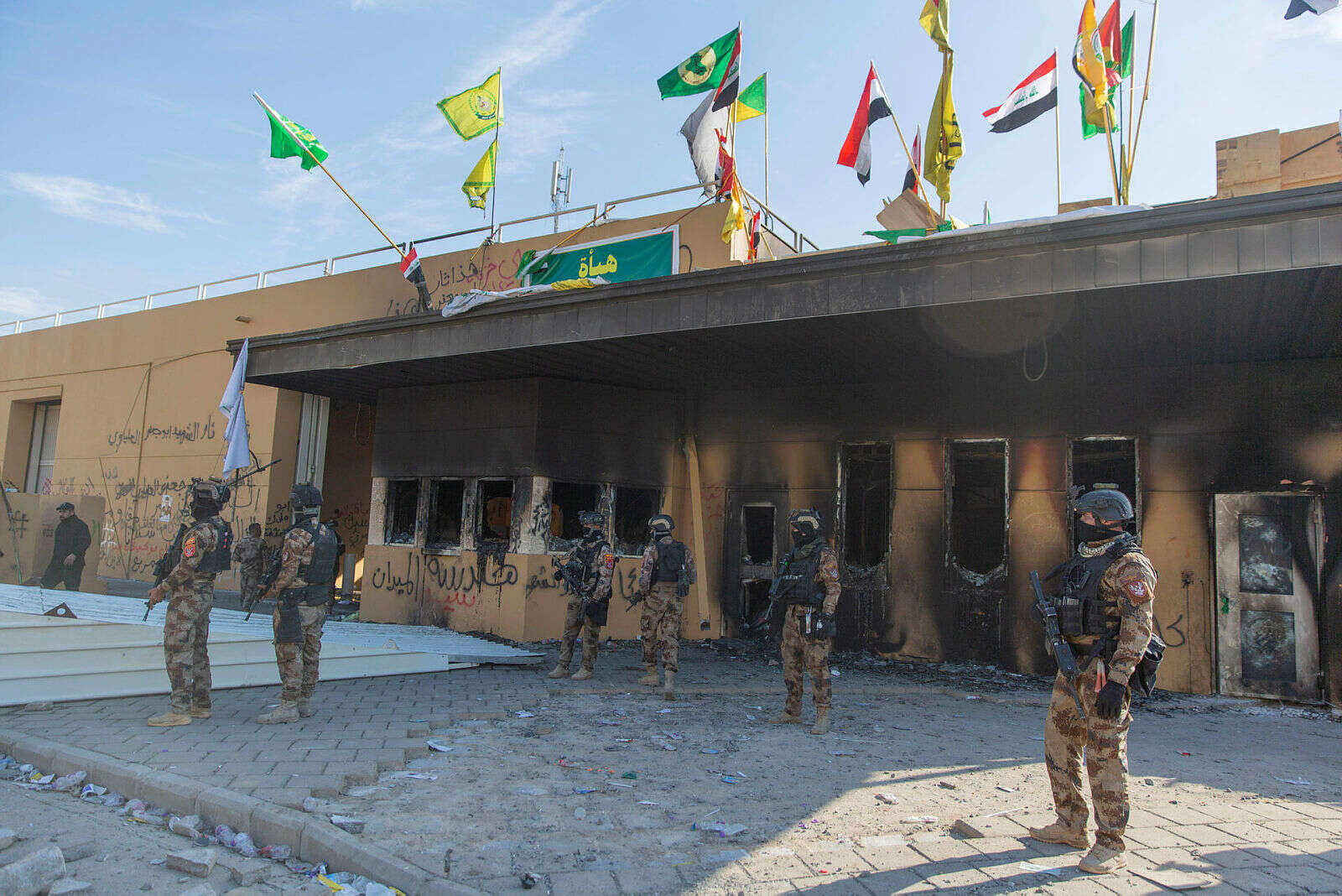 אזור השגרירות הפך ליעד עבור המיליציות הפרו-איראניות בתקופה האחרונה. לאחר התקיפה האמריקנית על בסיס "גדודי חיזבאללה של עיראק" במזרח המדינה, המוני פעילים פרו-איראנים הסתערו לעבר השגרירות והציתו את עמדת הכניסה. כמה ימים לאחר חיסול סולימאני, דווח על טילים שנפלו באזור השגרירות.