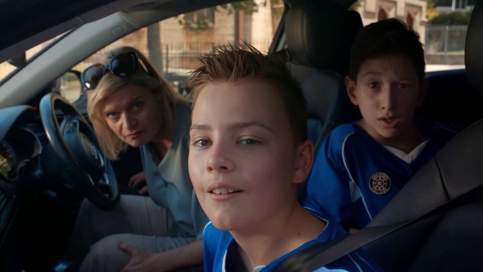 לצד שני המתבגרים מביטה במבט נוזף ועצבני בצעירה האם שלהם, שגם מגניבה לשנייה מבט אל החזה של הצעירה מתוך השוואה וקנאה. הצעירה שוברת את השתיקה הנבוכה בכך שהיא מציעה לשתי הבנים לצאת איתה לאכול במסעדת KFC.