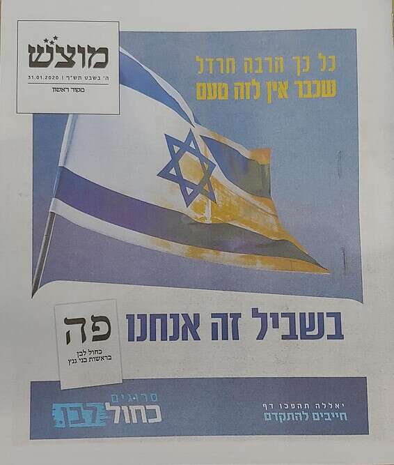 כזכור, בסוף השבוע האחרון, פרסמה מפלגת כחול לבן מודעת קמפיין בעלוני השבת ובעיתוני סוף השבוע של הציבור הדתי, בו נראה דגל ישראל מלוכלך וצבוע בצבע צהוב חרדלי כשלצד הדגל ישנו הכיתוב "כל כך הרבה חרדל שכבר אין לזה טעם".