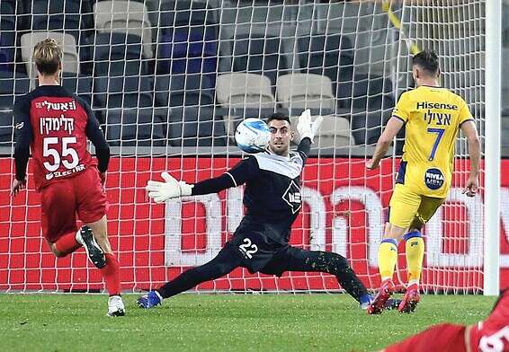 דקה 68': עוד בעיטה טובה של אצילי, אבל הפעם צור מצליח לעצור אותו.