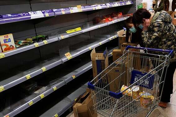 מדפים ריקים במרכול בבייג'ינג // צילום: איי.פי