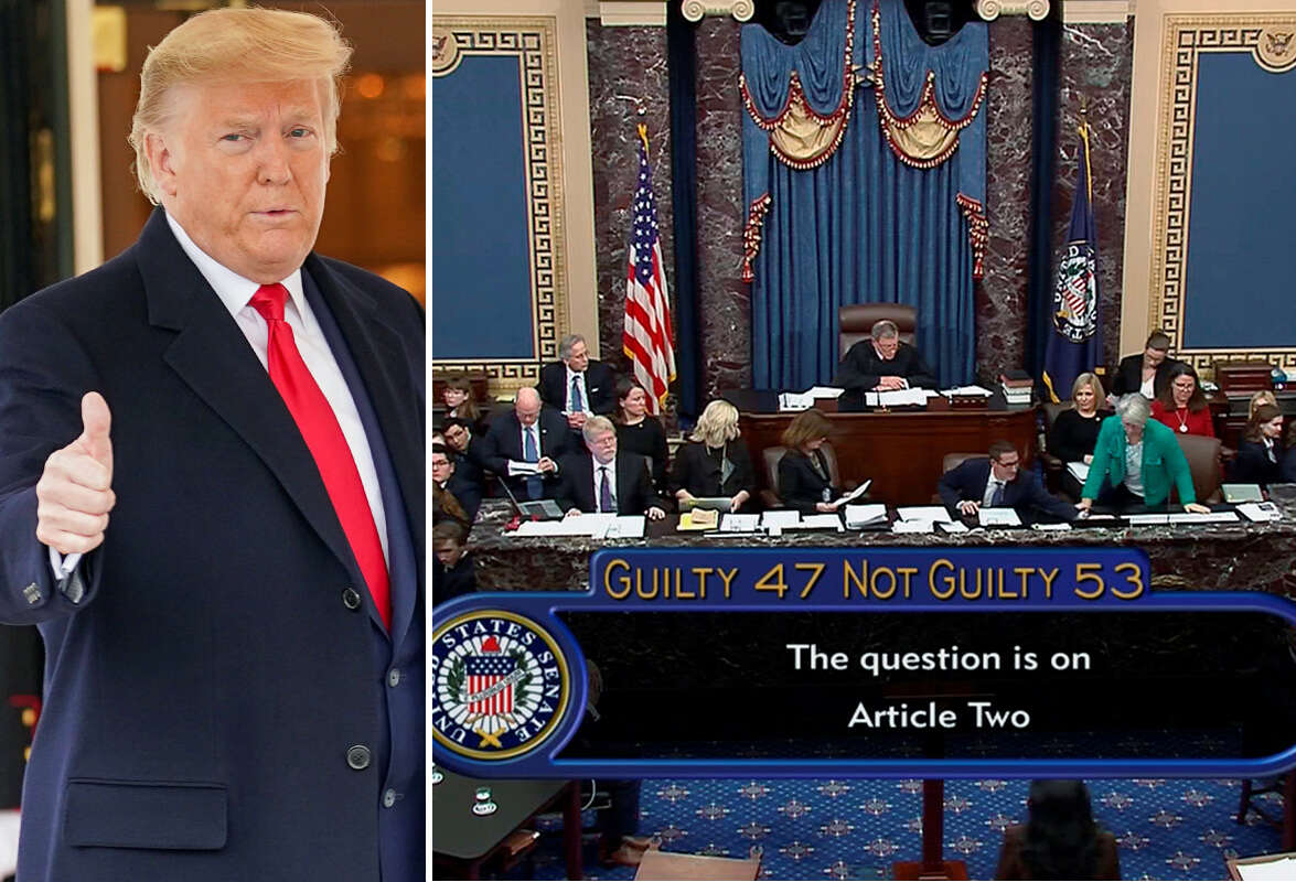 ניצחון לטראמפ: הסנאט האמריקני דחה הלילה (רביעי) את ההצעה להדיח את הנשיא האמריקני בשל פרשת אוקראינה-גייט. בסעיף הראשון של ניצול לרעה של סמכות הקונגרס הנשיא זוכה לאחר ש-48 חברים סנאט תמכו לעומת 52 התנגדו. לצורך הדחה נדרשו לדמוקרטים רוב של 67 חברים (שני שלישים), משימה כמעט בלתי אפשרית שכן בסנאט ישנו רוב רפובליקני.