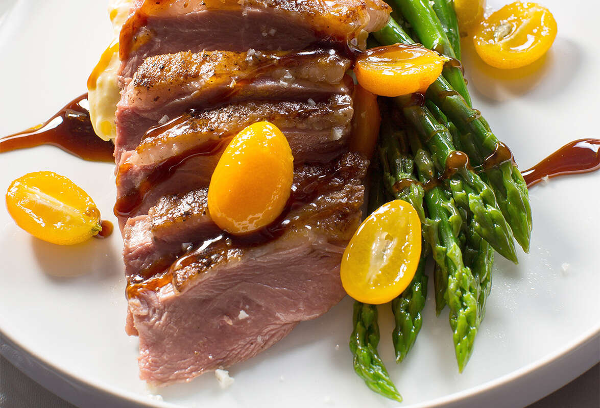 חזה אווז סו־וויד עם אספרגוס בניחוח תפוז // צילום: איתיאל ציון