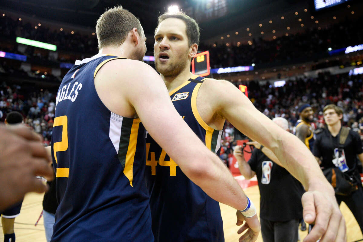 1.6 שניות לסיום המשחק הרוקטס היו בטוחים שהניצחון הולך לכיוון שלהם עם שלשה ענקית של פי ג'יי טאקר. לבויאן בוגדנוביץ' הקרואטי היו תוכניות אחרות ועם שלשה גדולה משלו שהכניסה להלם את הקהל המארח, הוא העניק לג'אז את הניצחון הגדול בקרב הצמרת של המערב. ג'ורדן קלרקסון היה הקלע המוביל של יוטה עם 30 נקודות כאשר דונובן מיטשל הוסיף 24 משלו ומייק קונלי תרם 20. אצל יוסטון, ראסל ווסטברוק סיים עם 39 נקודות וג'יימס הארדן סיפק טריפל דאבל נהדר של 28 נקודות, 10 אסיסטים ו-10.