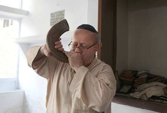סימן־טוב תוקע בשופר בבית הכנסת בקאבול. ביקר לאחרונה בישראל ב־1998