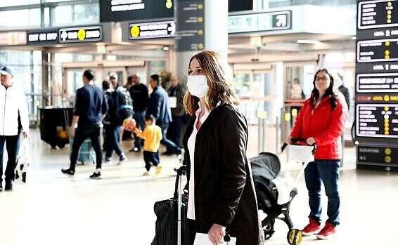 נוסעים בנתב"ג עם מסיכות להתגוננות מפני וירוס קורונה
